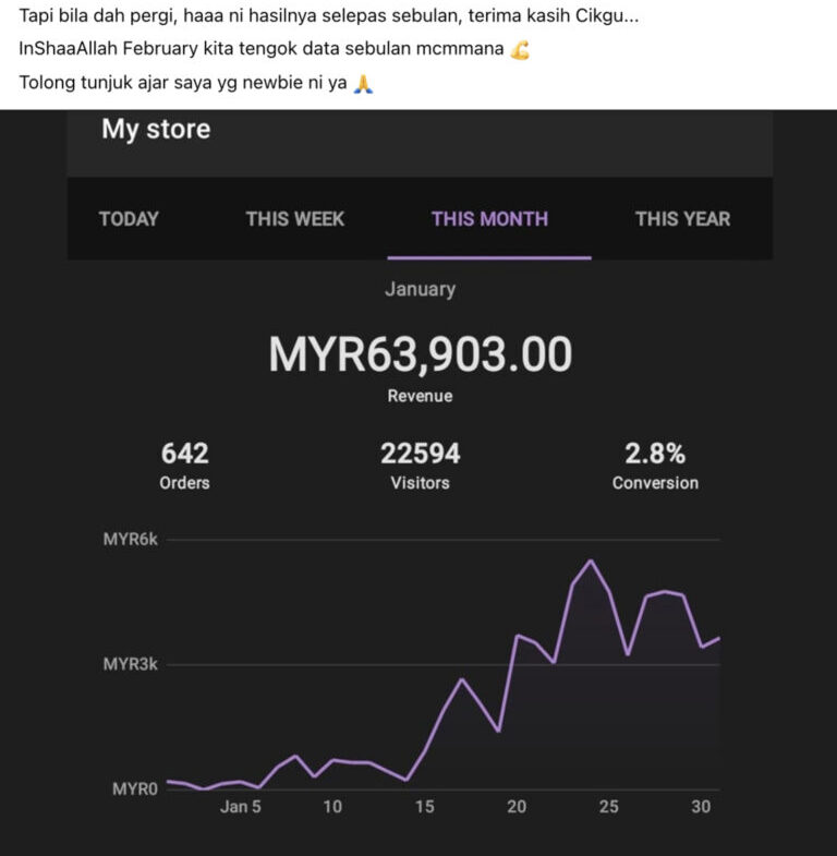 "..Ni Result dalam sehari, 10% Conversion Rate.. Sales dah 10K setakat ni.."