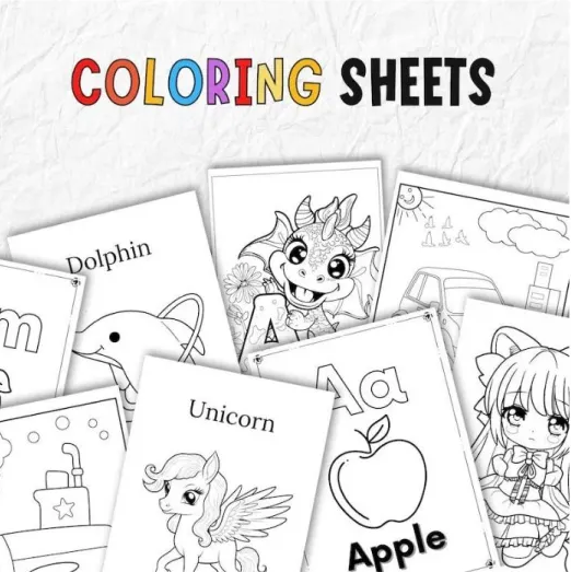 Anda dapat 9 kategory latihan kids untuk mewarna, boleh print anytime, dan edit versi digital